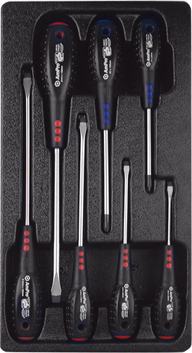Приобрести T32098 Набор отверток в ложементе, 7 пред(крест и шлиц) от компании AmPro (Тайвань) из раздела Ложементы пластиковые по цене 1 796 рублей.