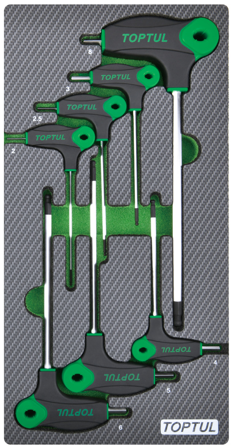 Набор шестигранных отверток с L-образной ручкой 2-8 мм, 7 пр, в мягком ложементе TOPTUL