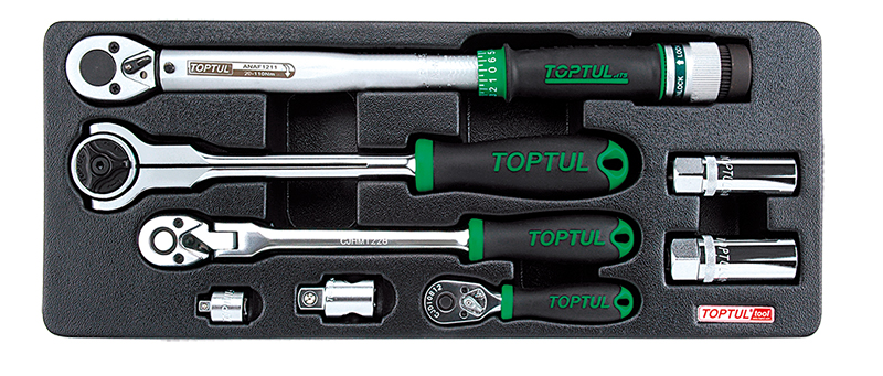 Набор трещоток 1/4", 3/8", 1/2", динамометрический ключ 3/8" 20-110 Нм, переходники и свечные головки, 8 предметов в ложементе (B) TOPTUL купить в Самаре и других городах России