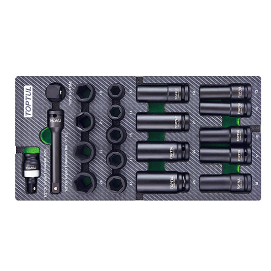 Приобрести Набор ударных головок 1/2" 13-24 мм, 21 предмет в мягком ложементе TOPTUL от компании Toptul (Тайвань) из раздела Ударный инструмент по цене 10 983 рублей.
