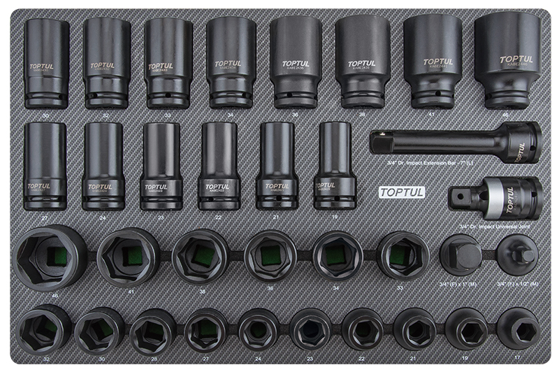 Набор ударных головок 3/4'' 17-46 мм короткие и длинные, 34 пр. в мягком ложементе (D) TOPTUL купить в Самаре и других городах России