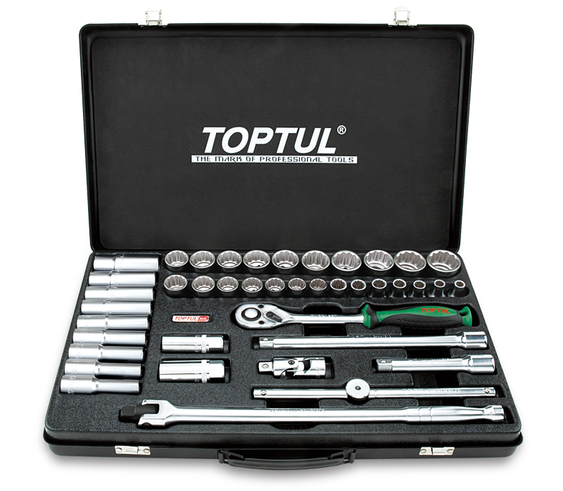 Набор головок и аксессуаров 1/2" 12-гранных 8-32 мм, 41 предмет в метал. кейсе TOPTUL GCAD4103 купить в Самаре и других городах России