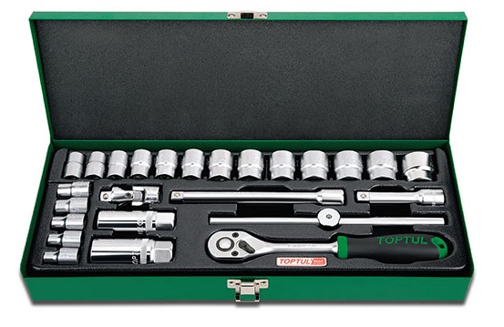 Набор головок и аксессуаров 3/8" 12-гранных 6-24 мм, 25 предметов в метал. кейсе TOPTUL GCAD2504 купить в Самаре и других городах России