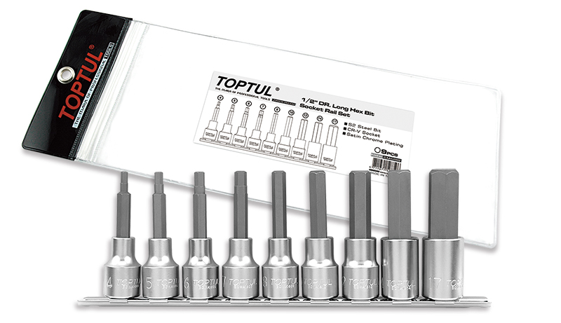 Набор торцевых головок 1/2" с шестигранными вставками 4-17 мм L=80 мм на планке 9 предметов TOPTUL купить в Самаре и других городах России